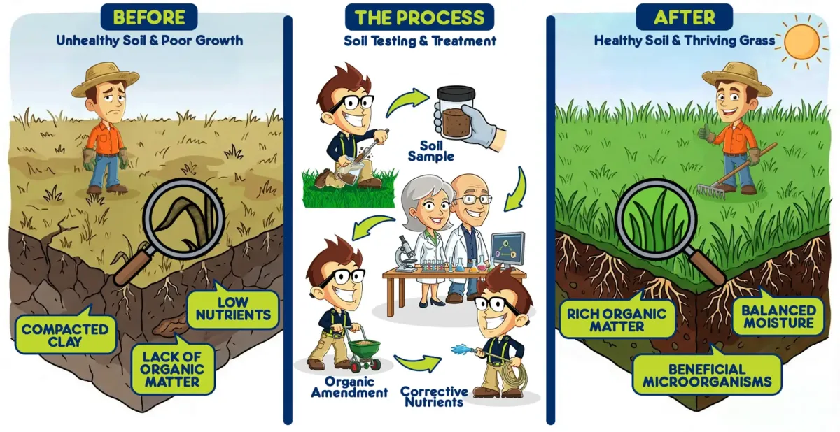 A physical sample from your yard goes to a certified agricultural lab. We get back exact data on pH, nutrients, and deficiencies.